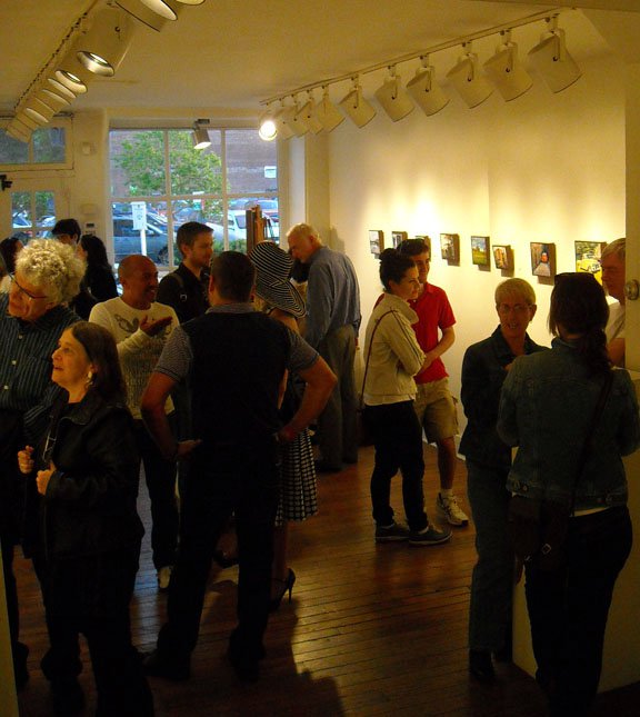 The gallery exhibitions rotate on a monthly basis. The first floor space is host to a featured artist each month. The second floor space displays group exhibitions.